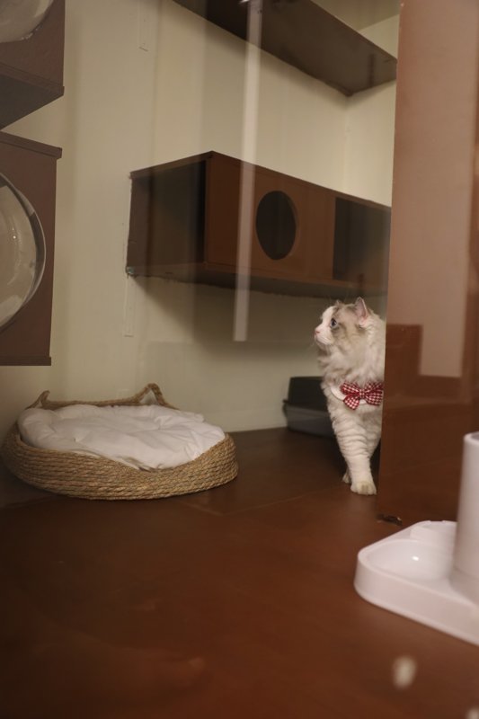 A space designed specifically to reduce feline stress. Each room is a private, family-only environment with acrylic doors that do not create harsh reflections.